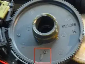 У белой шестерни отсутствуют несколько зубьев.