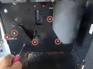 Снимите пять крестовых винтов, крепящих крышку шестерёнчатого механизма.