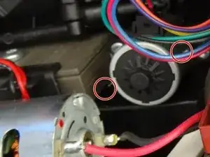 Коробка передач (чёрная пластиковая часть) прикреплена к металлическому корпусу двигателя четырьмя металлическими защёлками. Выпрямите защёлки небольшой отвёрткой.