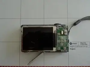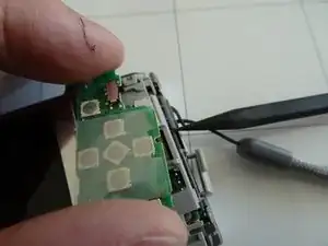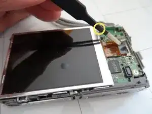 На противоположной стороне дисплей зафиксирован тонким куском жести. Осторожно отогните металл пинцетом или подобным инструментом