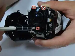Удалите 5 винтов с боковой панели корпуса камеры.