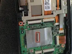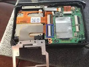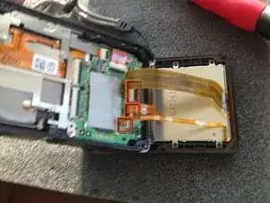 Аккуратно снимите задний ЖК-экран с корпуса, следя за тем, чтобы не повредить три соединительных шлейфа.
