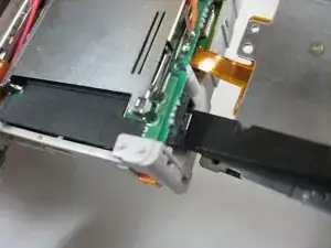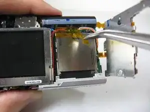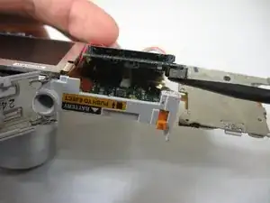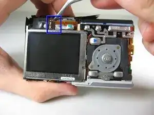 Осторожно и плавно оттяните плату управления в верхнем левом углу, рядом с видоискателем.
