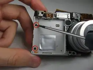 Два серебристых винта 2,08 мм Phillips #00 с левой стороны камеры