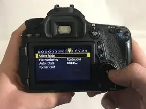 Включите камеру, переместив переключатель с позиции «Выкл» в позицию «Вкл». Переключатель расположен над сенсорным экраном и слева.