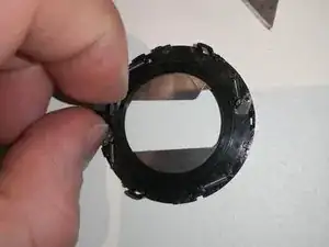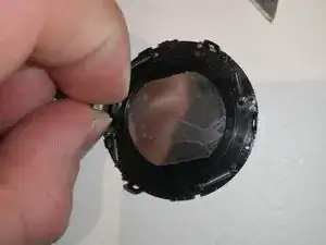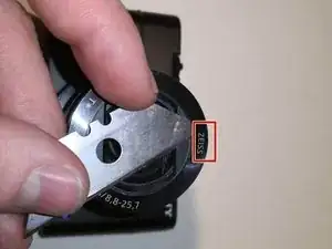Используйте тонкое металлическое лезвие, чтобы ослабить металлическую крышку от кромки объектива. Она приклеена при помощи клеевой ленты. Аккуратно проведите лезвием вокруг объектива — крышка должна легко отойти. Если возникают затруднения, рассмотрите возможность использования фена или грелки для нагрева крышки.