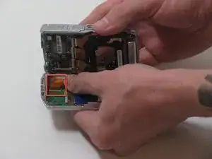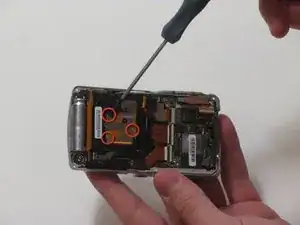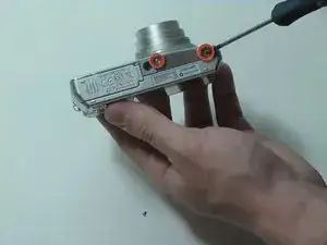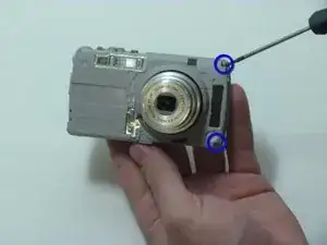 С помощью отвертки Phillips размера 0 снимите 2 винта с нижней части камеры