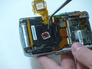 С помощью отвертки Phillips размера 0 отвёрните 3 винта, удерживающие шлейфовую пластину, закрывающую заднюю часть объектива.