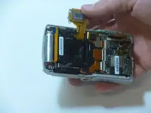 При разделении двух корпусов будьте осторожны с серебристой полосой и кнопками, расположенными в середине камеры. Они могут отстать.