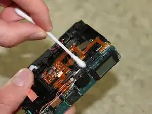 Используя ватную палочку, аккуратно протрите пыль, грязь или остатки в и вокруг переключателя.