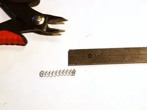 Укоротите пружину от шариковой ручки до длины около 4 мм.
