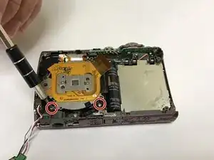 С помощью отвертки Phillips #000 выкрутите два видимых 5‑мм винта, которые крепят объектив к камере.
