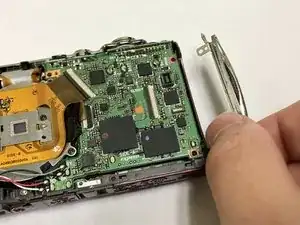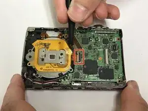 Поднимите материнскую плату с камеры, чтобы оголить сборку объектива.