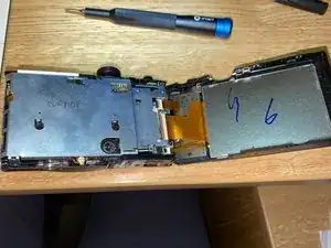 Снимите переднюю панель камеры. После удаления всех винтов она должна легко отстать.