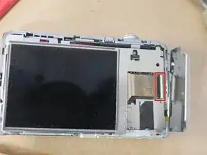 Откройте зажим ZIF-разъёма и выдвиньте гибкий кабель. (На разъёме может быть кусок липкой ленты. Снятие этой ленты может позволить открыть прижимную планку разъёма.)