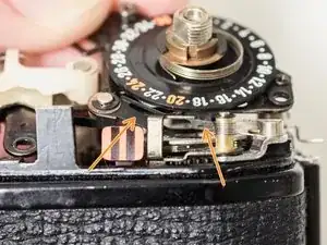 Очистка блока затвора может устранить проблемы с неравномерной экспозицией и даже вернуть в рабочее состояние заедавший затвор. В узле есть два резиновых буфера, которые со временем разлагаются и в конечном итоге могут мешать движению шторок. Удаление липкого налёта обычно достаточно для восстановления корректной работы затвора.