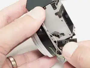 Вытяните окуляр из его металлической рамки. Он всё ещё прикреплён к основной гибкой печатной плате.