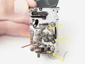 Снятие этого рычага и очистка старой втулки обычно достаточно, чтобы вернуть камере работоспособность.