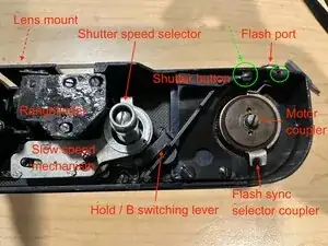 Открутите и снимите кнопку спуска затвора и порт вспышки.