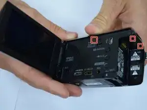 Удалите винт с экрана камеры и выше от отсека батареи.