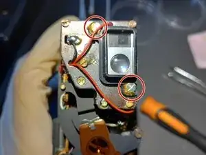 Сборка может быть выполнена путем установки видоискателя на место и закручивания винтов обратно.