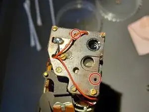 Удалите их, а затем вытащите видоискатель из-под верхнего красного провода.