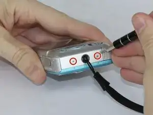Выверните два винта с правой стороны корпуса камеры, напротив ремешка. (2 мм Phillips 00)