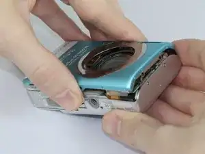 Выверните два винта со стороны корпуса камеры с ремешком. (4 мм Phillips 00)