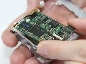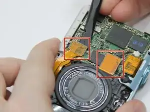 Для снятия платы не требуется снимать узлы объектива или вспышки.