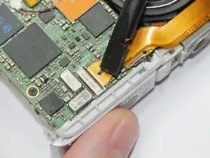 Используйте лопаточку, чтобы поднять язычок на разъёме с нулевым усилием вставки (ZIF), расположенном внизу платы.