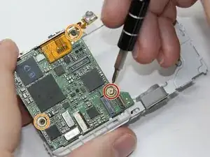 Выверните нижний правый винт платы. (4 мм Phillips 00)