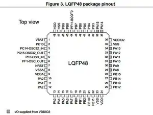 Третья фотография взята из даташита ST и показывает распиновку в исполнении LQFP48.
