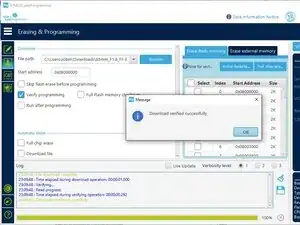 В разделе Download используйте Browse, чтобы выбрать ваш файл прошивки .Bin. Установите флажок «Verify Programming», затем нажмите кнопку «Start Programming». После завершения программирования и проверки вы увидите диалог подтверждения (Изображение 3)