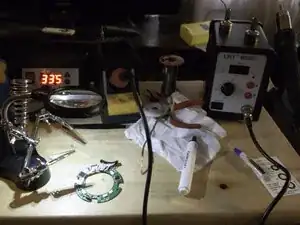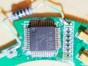 Я перепаивал плату. Третья рука, паяльная паста и флюсовый карандаш были обязательны! Работал 858D при примерно 333°C и воздушном потоке 4¾, паяльник был на 312°C. Я очистил контактные площадки, нанес паяльную пасту, установил микроконтроллер и использовал наибольшую из трёх насадок для пайки. Пришлось дорабатывать флюсовой пастой, паяльником и оплеткой, прогревать флюс и использовать самую маленькую насадку. Часы работы.
