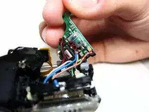 Найдите материнскую плату вспышки, расположенную за блоком вспышки в верхнем правом углу.