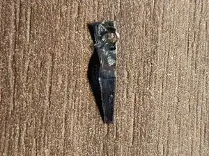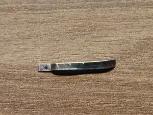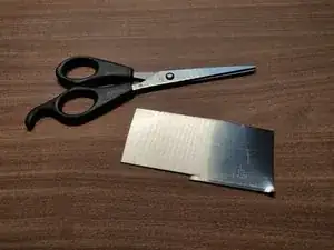 Возьмите ножницы по металлу и отрежьте небольшой кусок алюминия. Сделайте его длиннее необходимого, чтобы было за что держаться при работе. Ширина определяется шириной сломанного пластикового элемента (ок. 3 мм).