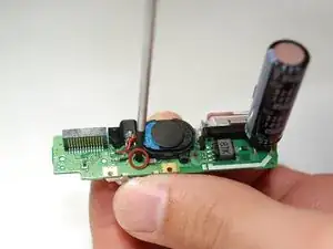 Удалите два винта с платы с левой стороны от объектива.