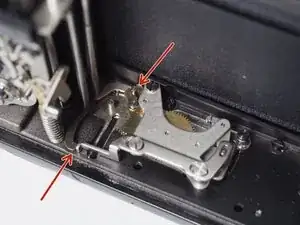 На этом этапе можно выполнить базовое обслуживание затвора. Важные детали можно очистить, а критические точки — смазать. Если затвор работал нормально до разборки, это хорошее профилактическое обслуживание и позволит камере работать плавно. Если затвор работает плохо, с временем занавесок, сильно отклоняющимся от нормы, рекомендуется более глубокая разборка и чистка.
