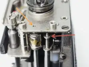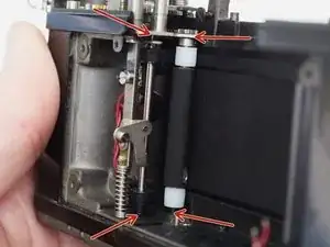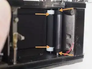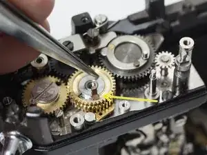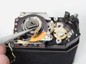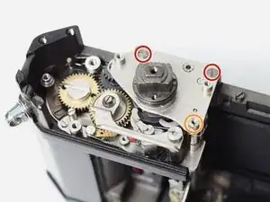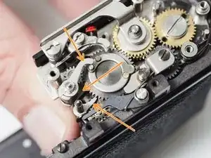 Фотографии в этом руководстве показывают камеру с уже разобранным механизмом перемотки. Это не обязательно делать вначале, но иногда требуется для доступа к шестерням транспортировки.
