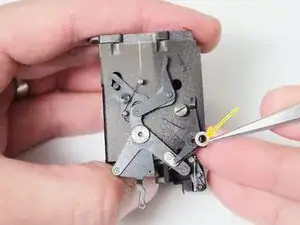 Удалите рычаг самоспуска. Внутренний механизм развернется за установленную позицию, когда рычаг будет снят.