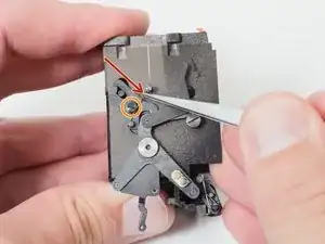 В конце экспозиции большая черная шестерня нажимает на рычаг разблокировки, возвращая зеркало в положение просмотра.