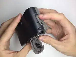 Крепко возьмите верхнюю и нижнюю части корпуса, как показано.