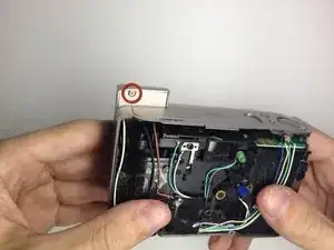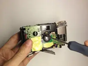Найдите винт на передней части камеры, который удерживает сборку видоискателя.