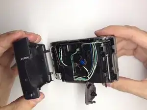 Откройте дверцу для плёнки, чтобы снять заднюю крышку.