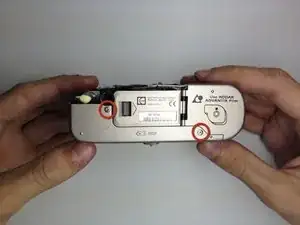 Найдите 3 винта, которые крепят заднюю крышку к корпусу камеры.