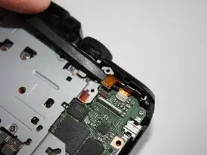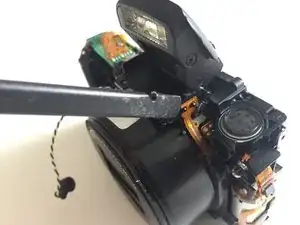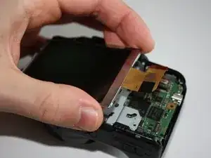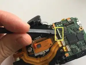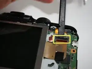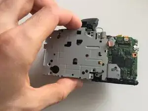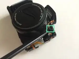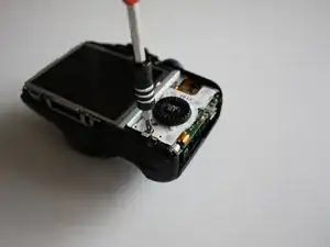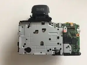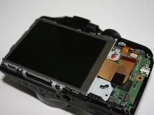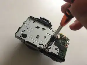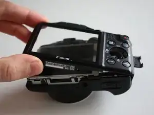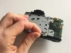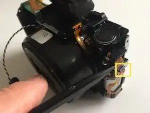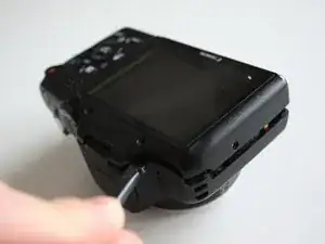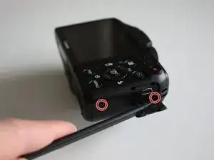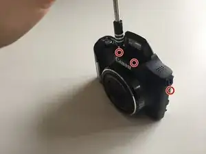 Отверните винты под вспышкой и на левой стороне камеры крестовой отверткой.