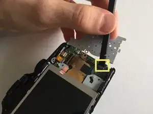 Аккуратно отведите вверх защёлку гибкого шлейфа и отсоедините шлейф.
