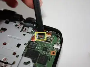 Когда все винты вынуты, при помощи пластикового открытия подденьте заднюю крышку с левой стороны и снимите её.