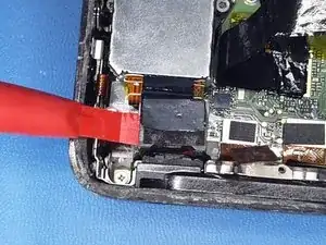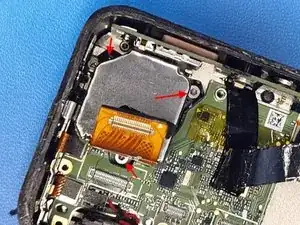 Чтобы снять кнопку питания с её опорной скобой, поверните элемент в сторону и потяните. После всех предыдущих шагов она удерживается только пластиковым штифтом