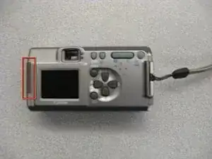 Найдите винт и резиновую заглушку на левой стороне камеры. Сдвиньте резиновую заглушку, чтобы открыть второй винт.